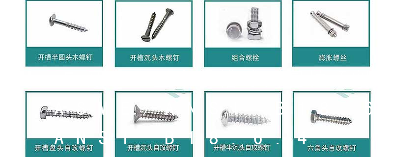 (鐵板牙自攻螺絲) B-2: Plastic Tapping Screw. (塑膠用,自攻螺絲) C: Wooden Screw : 木工螺絲 D: Drywall Screw :水泥墻螺絲 E: Self Drilling Screws鉆尾螺絲(不銹鋼鉆尾螺絲,復(fù)合材料鉆尾螺絲) F:膨脹螺絲,四片膨脹螺絲又名:四片壁虎。 膨脹螺栓的等級分為:45、50、60、70、80, 膨脹螺絲的材料:主